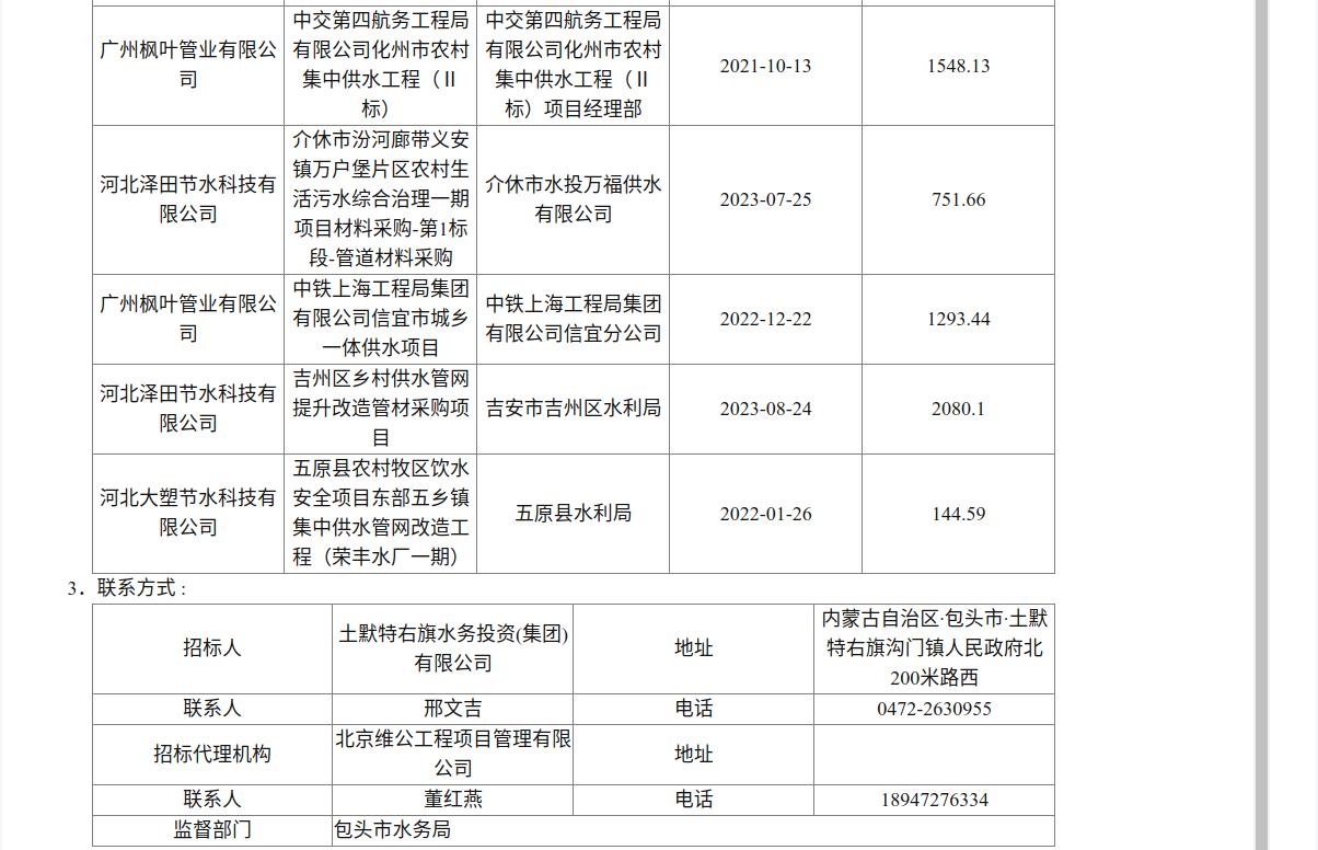 土默特右旗东线、西线供水管网联通工程材料采购三标段中标候选人公示